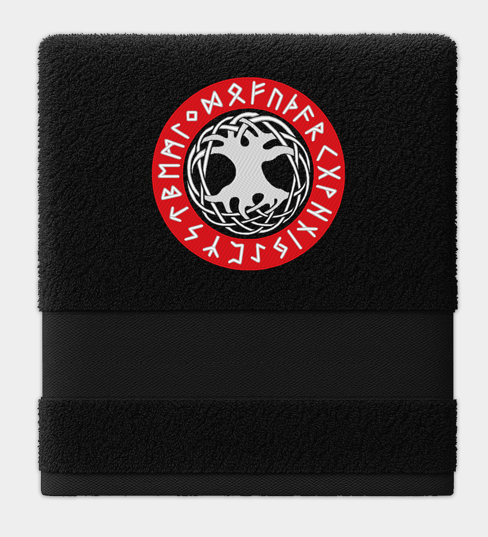 Yggdrasil-kirjailtu pyyhe